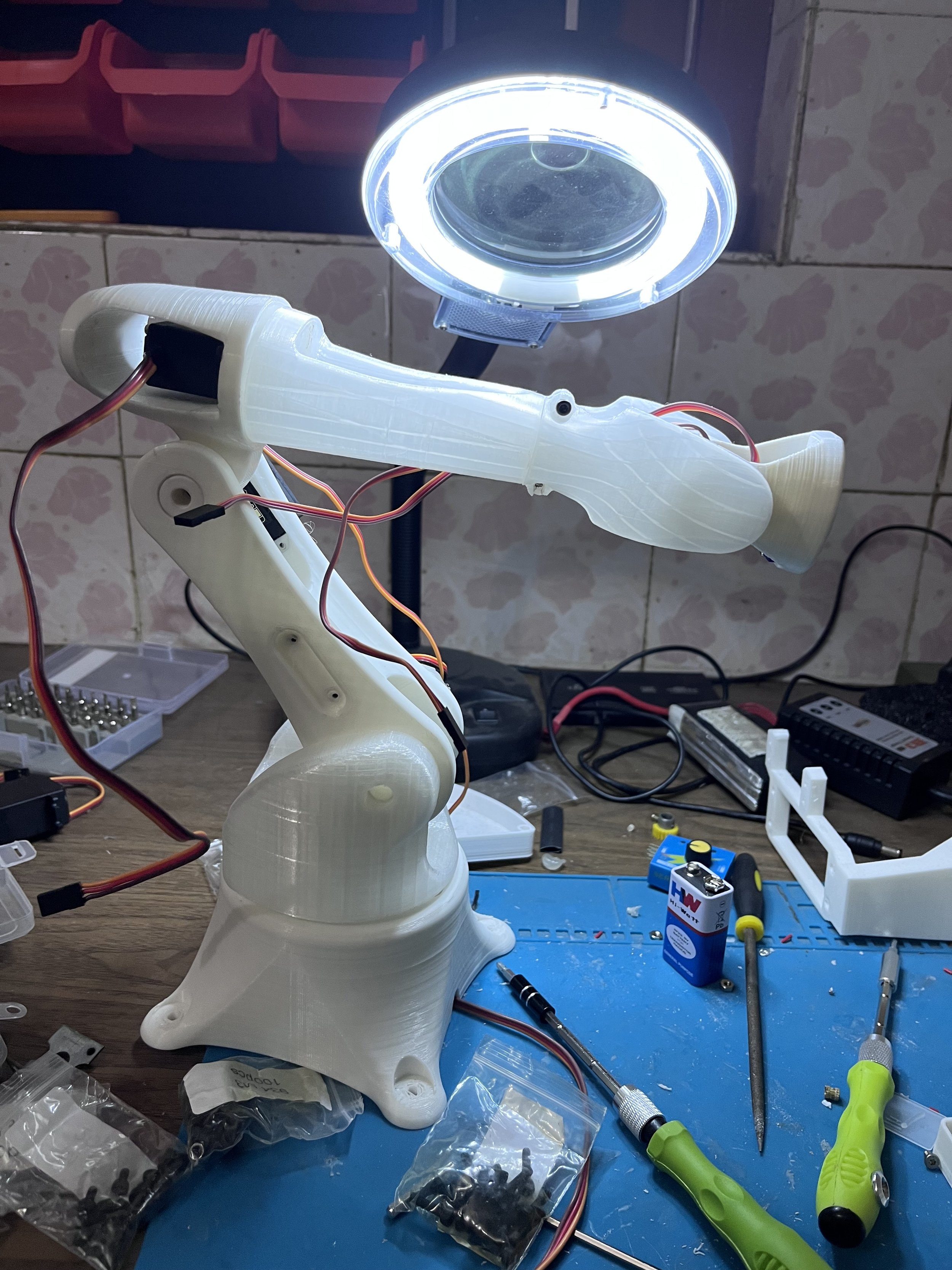 The 3D-printed prosthetic arm incorporated servo motors for finger movement, controlled by EMG sensors. These sensors detect muscle movements on your arms and legs, allowing the prosthetic arm to respond accordingly.