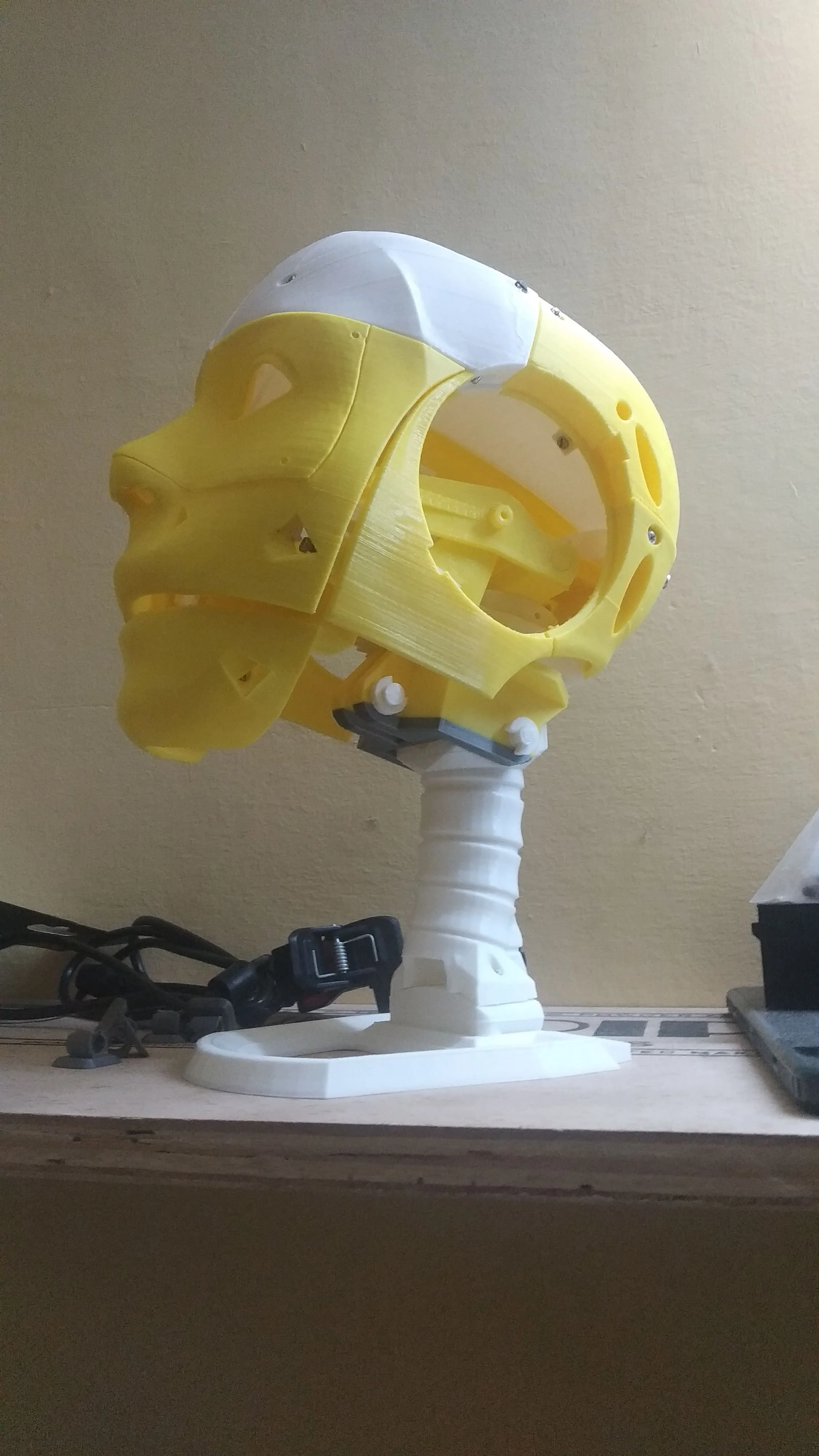 3D printed an humanoid head. The designs are from an open source project called Inmoov. The humanoid head has 10 servos that can be controlled using a python based custom designed GUI software. The robot can do gaze prediction and follow a user’s face.